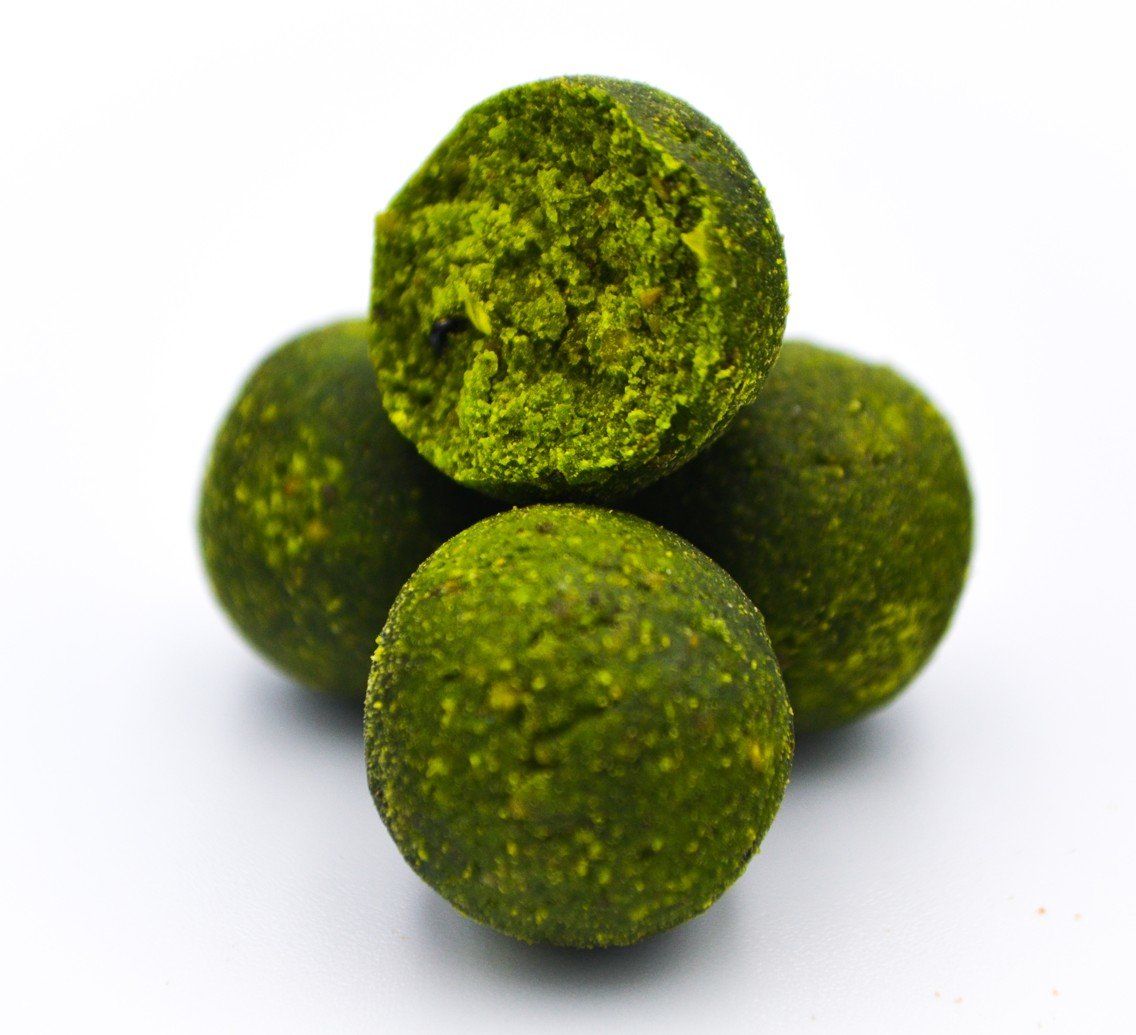 Massive Baits – Green Mulberry 24mm cechuje się mocnym, owocowym aromatem o wyraźnie wyczuwalnych nutach kwiatowych. Zapach bardzo równomiernie rozchodzi się w wodzie, wabiąc wielkie okazy nawet na dalekich odległościach. Podstawą kulek jest mix Vatio Nutz, z wyraźnie zaznaczonymi frakcjami, wyróżniający się idealną konsystencją. Dodatek czarnego pieprzu wspaniale podbija ich smak.
